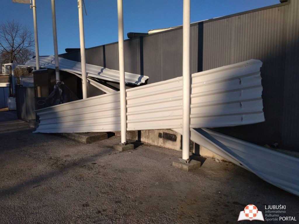 Stradao je lim na krovu dvorane. Oštećena je istočna strana krova te je pričinjena veća materijalna šteta, javlja Iks-portal.info. Srećom, nitko nije stradao od prolaznika, niti je pričinjena šteta na drugim objektima premda je vjetar razbacao lim okolo zgrade.