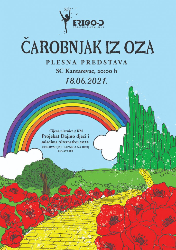 Zbog epidemioloških mjera predstava se ne može održati u HDHS Kosača kako je bilo dosadašnjih godina, pa će se Čarobnjak iz Oza održati u SC Kantarevac 18.6.2021 u 20h, ulaznice po cijenu 5 KM možete kupiti pola sata prije predstave.