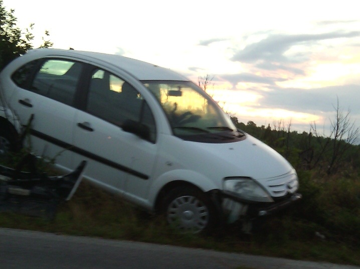 ... osobno vozilo 'Citroën' uslijed neprilagođene brzine i mokrog kolnika sletio sa ceste.