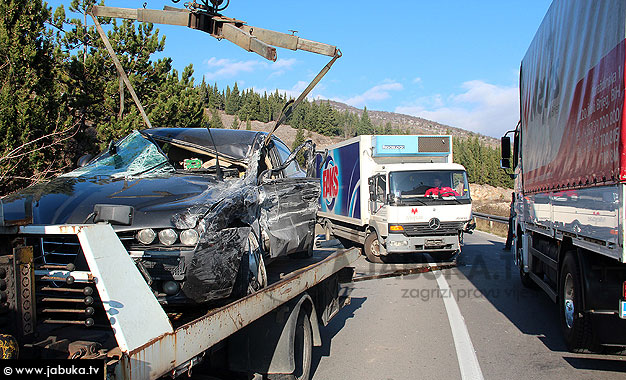 Kako doznaje portal Jabuka.tv s lica mjesta, vozilo marke Alfa Romeo podletjelo je pod kamion te je na vozilima nastala velika materijalna šteta. Vozač Alfe zadobio je ozljede za sada neutvrđenog stupnja.