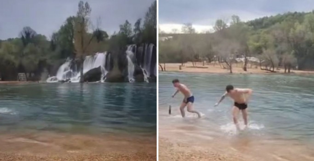 VIDEO Hrabri mladići otvorili sezonu kupanja na slapovima Kravice