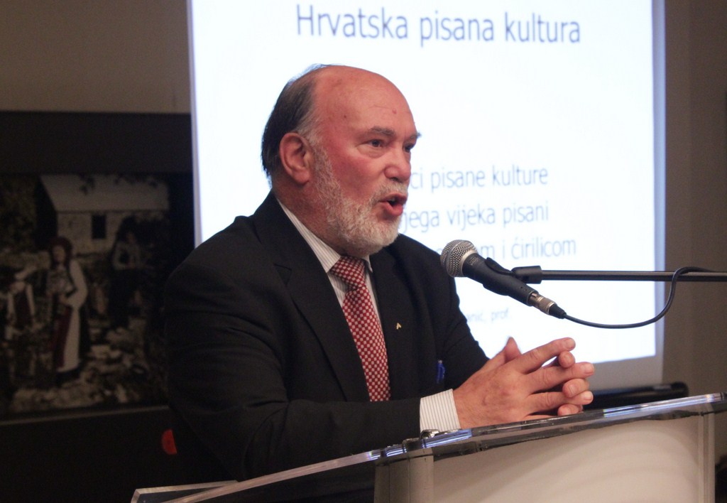 Po njegovim riječima, svaki narod obilježava njegov jezik i pismo, a hrvatski se narod može pohvaliti s tri jezika staroslavenskim, liturgijskim - latinskim i narodnim koji ulazi u tekstove već u 12. stoljeću, te trima pismima - glagoljicom, ćirilicom i latinicom. "To znači da je hrvatska kultura duboko ukorijenjena i da se kultura hrvatskoga naroda razvijala ukorak s ostalim kulturno razvijenim narodima Europe. ", kazao je akademik Bratulić.