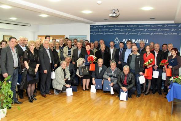 U lijepomu ozračju, sudionici su se potom premjestili u Aluminijeve rajske vrtove, gdje se nastavilo s prijateljevanjem i zasluženom zdravicom, u društvu predstavnika partnerskih tvrtki. Uz neizbježna prisjećanja na vrijeme poslijeratne obnove Aluminija te na krizno razdoblje ovih novijih godina, u razgovorima o vremenu pred nama osjećao se opravdani optimizam zbog pokazatelja oporavka i polagane, ali sigurne stabilizacije poduzeća.