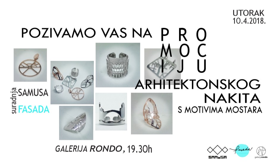 ... sarajevskim arhitektom i zlatarom, Tarikom Musakadićem, predstavljaju „Arhitektonski nakit sa motivima Mostara"u Galeriji RONDO, Mostar, 10. travnja 2018. u 19.30h
