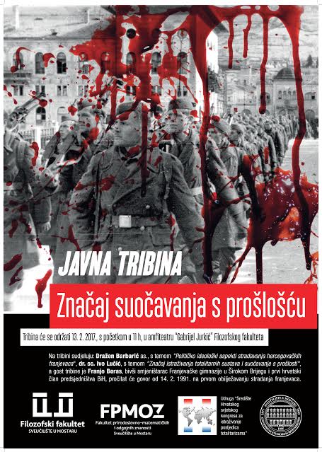 Na tribini će sudjelovati asistent Dražen Barbarić koji će govoriti o političko ideološkom aspektu stradavanja hercegovačkih franjevaca dok će dr. Ivo Lučić govoriti o značaju istraživanja totalitarnih sustava i suočavanja s prošlošću. Gost tribine je Franjo Boras, bivši sjemeništarac Franjevačke gimnazije u Širokom Brijegu i prvi hrvatski član Predsjedništva BiH koji će pročitati govor s prvog obilježavanja stradanja franjevaca, 14. veljače 1991. godine.