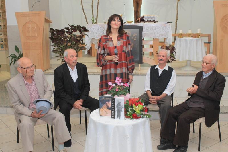 ...knjževnice Anite Martinac u romanu "POSLJEDNJI" koji je sinoć predstavljen u crkvi sv. Ante u Cimu sa preživjelim svjedocima i akterima Križnog puta i Blajburške tragedije. Četvorica starina tada 17-ogodišnjaka, Šimun Marić, Jure Jurić, Mirko Džidić i Slavko Šuman kroz ulomke iz romana prisjetili su se još jednom svih strahota koje su preživjeli a Šimun je smogao snage i kazati kroz kakvu su kalvariju proši ali i reče na kraju "JA SVOJIM PROGONITELJIMA I MUČITELJIMA OPRAŠTAM ALI ZABORAVITI NE MOGU"...