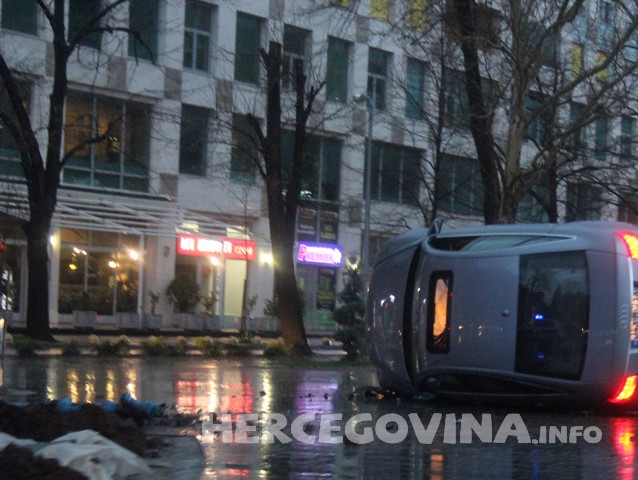 FOTO Mostar: Automobil se prevrnuo ispred spomenika Hrvatskim braniteljima