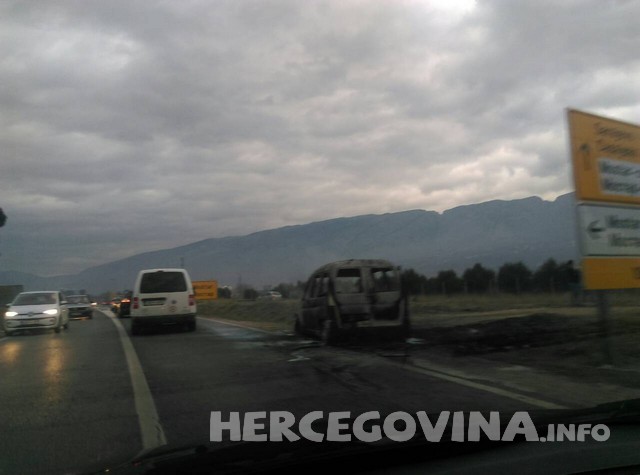 FOTO Mostar: Automobil se zapalio u vožnji i izgorio