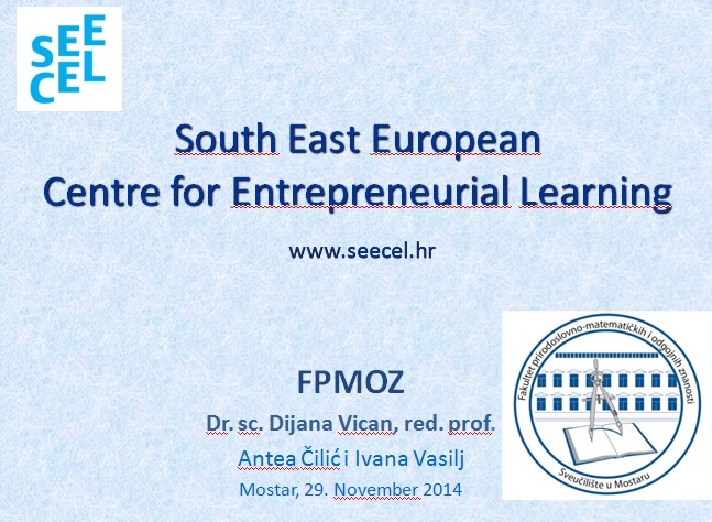 ...u okviru SEECEL-ovog projekta Razvoj poduzetničkih kompetencija, u kojem FPMOZ, ispred Sveučilišta u Mostaru, sudjeluje kao jedna od pilot institucija.