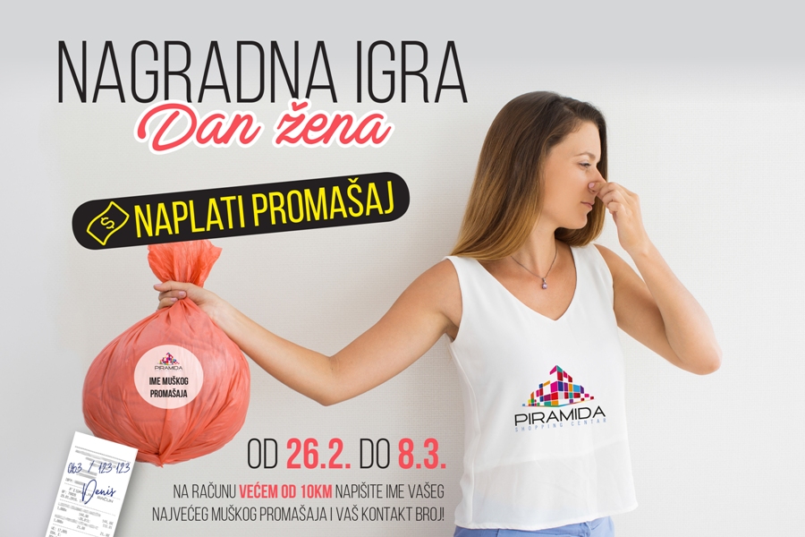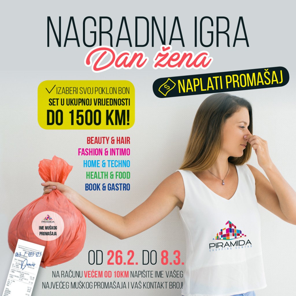 Pošto psiholozi kažu da treba izbacivati negativnosti iz svog života, i doslovno i metaforički, mi ćemo Vam nastojati u tome pomoći. Povodom Dana žena, od 26.2. do 8.3. 2019. godine svakom potrošnjom iznad 10 KM možete sudjelovati u nagradnoj igri.