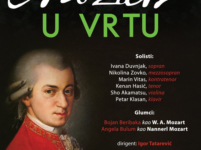 Tradicionalne operne arije iz poznatih Mozartovih opera („Figarov pir", „Čarobna frula" i dr.) uz pratnju Simfonijskog orkestra Mostar i Zagrebačkog orkestra mladih pjevat će mlade sopranistice NIKOLINA ZOVKO iz Mostara i IVANA DUVNJAK iz Zagreba, kontratenor MARIN VITAS iz Splita, te tenor KENAN HASIĆ iz Srebrenika.