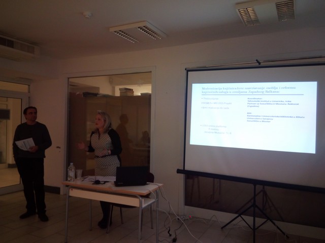 Koordinatori ERASMUS+ projekta za Sveučilište u Mostaru - Štefica Dodig i Josip Šimić upoznali su polaznike sa ciljevima drugog pilot LNSS treninga, a potom je uslijedio trening kojeg su izvodili članovi tima LNSS projekta Sveučilišta u Mostaru, doc.dr.sc.Andrea Ivanković, ass. Iva Bilić, mag. phil. bibl.(Inovativne online bibliotekarske usluge za knjižničare u 21.stoljeću) i Sanja Ledić,prof.(Izgradnja knjižnične zbirke). Treningu su prisustvovali bibliotekari iz školskih, narodnih i visokoškolskih knjižnica.