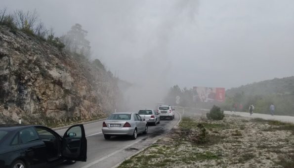 Vatra nije uspjela zahvatiti cijeli automobil, a požar su ugasili vozači protupožarnim aparatom.
