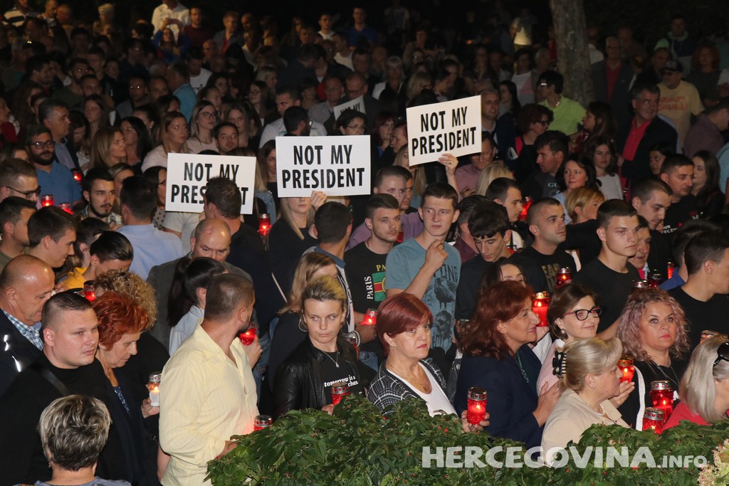Mladi Mostara pozvali su na prosvjed kome se odazvalo više tisuća ljudi, procjena je oko 10. 000 koji su mirno i dostojanstveno u kilometarskoj koloni otišli pred ured hrvatskog člana predsjedništva odakle su poslali poruku da Komšić nije njihov predsjednik.
