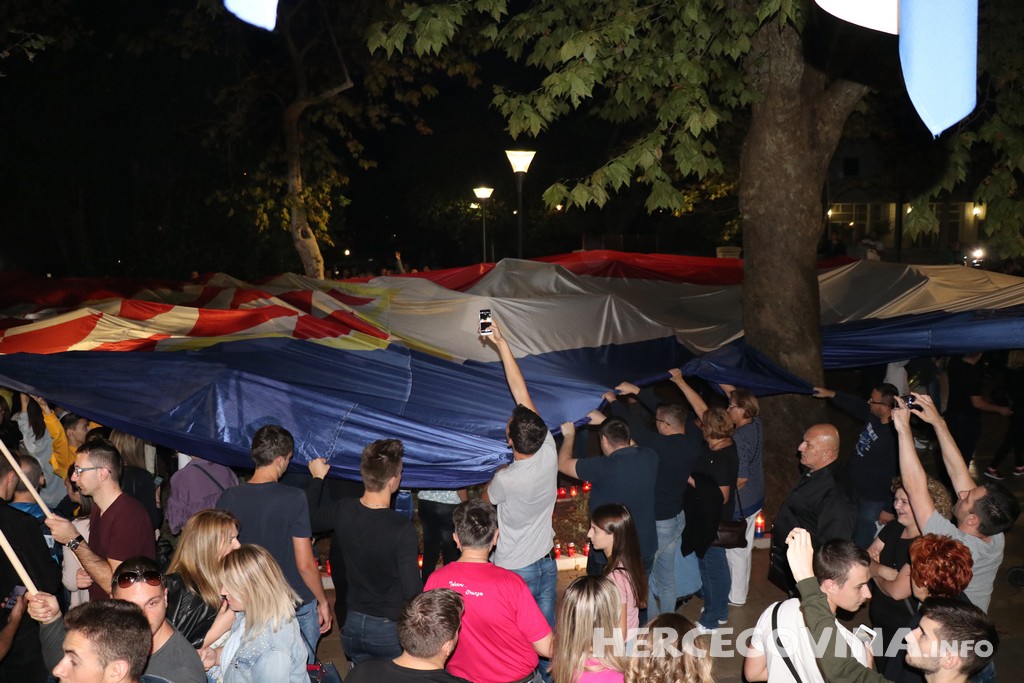 Svi oni su mirnom šetnjom došli do ureda hrvattskog člana predsjedništva gdje su upalili svijeće. U jednom trenutku razvila se velika zastava od četrdedetak metara, a zapjevala se i pjesma Ponosna moja je zemlja Hercegovina.