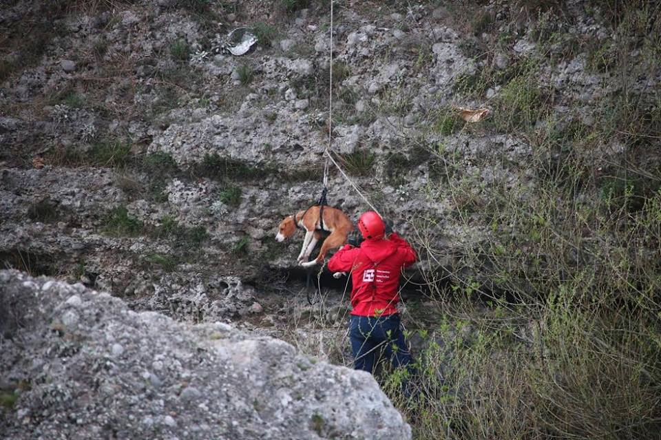 Spasioci su se pomoću užadi spustili do psa, svezali ga te izvukli na cestu.