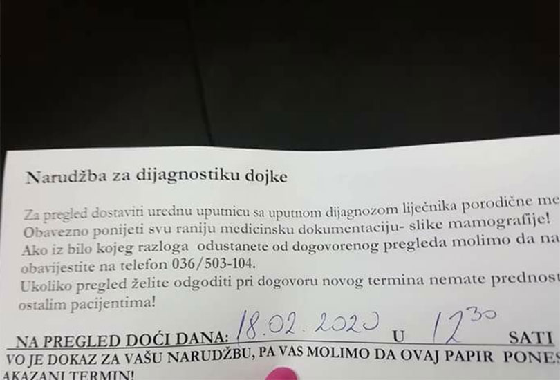 Mostar:U mjesecu borbe protiv raka dojke ženu naručili na pregled dojke tek 2020. godine