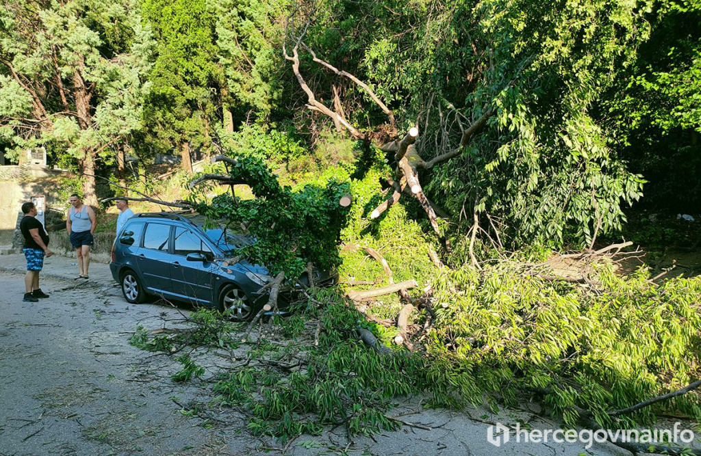 MOSTAR U padu stabla oštećen automobil i elektromreža