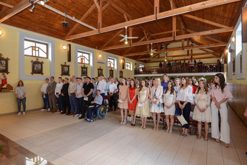 ... don Željko Majić, generalni vikar Mostarsko-duvanjske biskupije, podijelio je, kao delegat biskupa Ratka Perića, sakrament sv. potvrde pripremljenim kandidatima i kandidatkinjama kojih je bilo 102. U koncelebraciji sudjelovao je župnik don Mladen Šutalo, a don Ivan Marčić, župni vikar, koji je u suradnji s četvero animatora, pripremao ovogodišnje krizmanike, vodio je liturgijsko pjevanje. Za ovu su prigodu pjevali ujedinjeni župni zborovi praćeni instrumentalnim sastavima župe. Da sve protekne dostojanstveno, pobrinuli su se ministranti i volonteri. Zbog skučenosti prostora, u crkvu su ušli samo krizmanici i njihovi kumovi, dok su roditelji, rodbina i prijatelji i ostali vjernici cijelo slavlje pratili iz dvorišta preko razglasa. Ali, kako je naglasio krizmanik Marko u svom pozdravnom govoru, ova crkva, i u neodgovarajućem prostoru, svjedok je Božje ljubavi i svemoći.