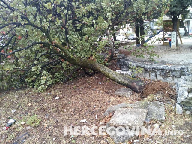 Stablo koje je oborio orkanski vjetar u središtu Mostara palo je na jedno vozilo u pokretu.