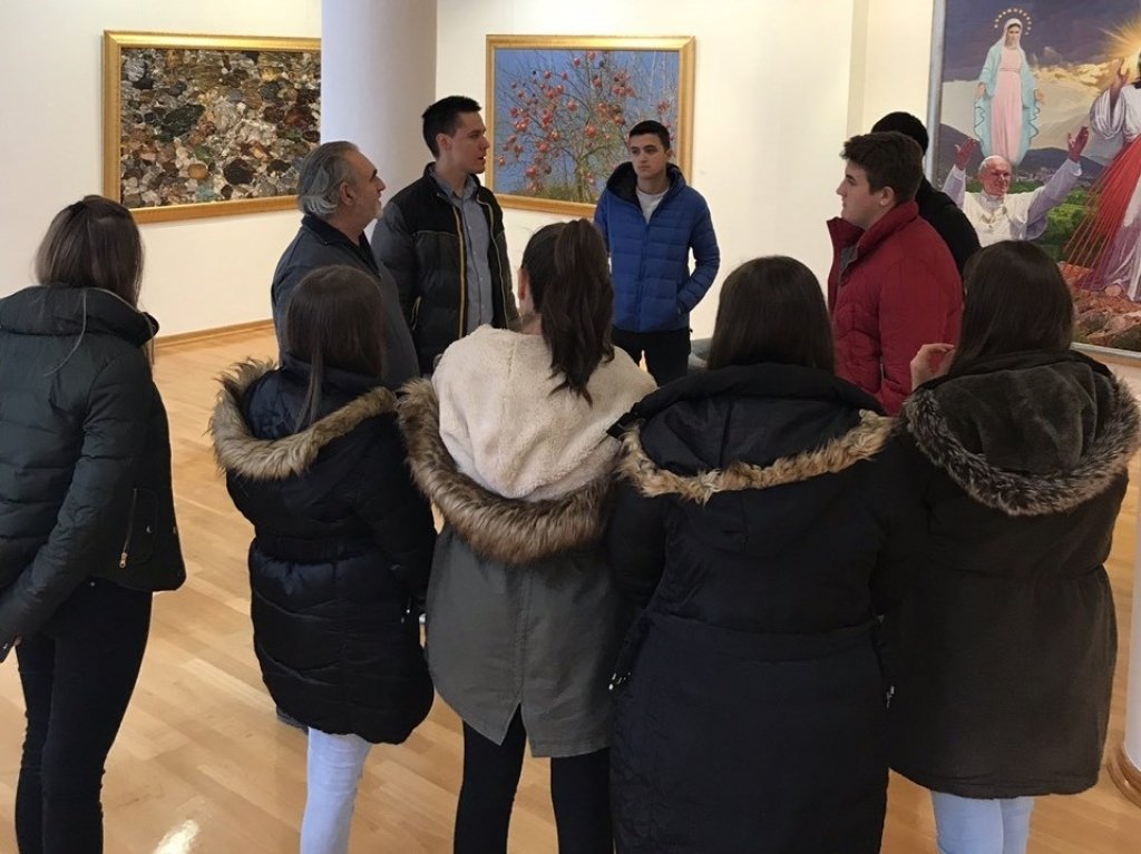 FOTO Mostarski slikar Marin Topić ugostio učenike trećeg razreda Građevinske škole Jurja Dalmatinca u Galeriji Aluminij