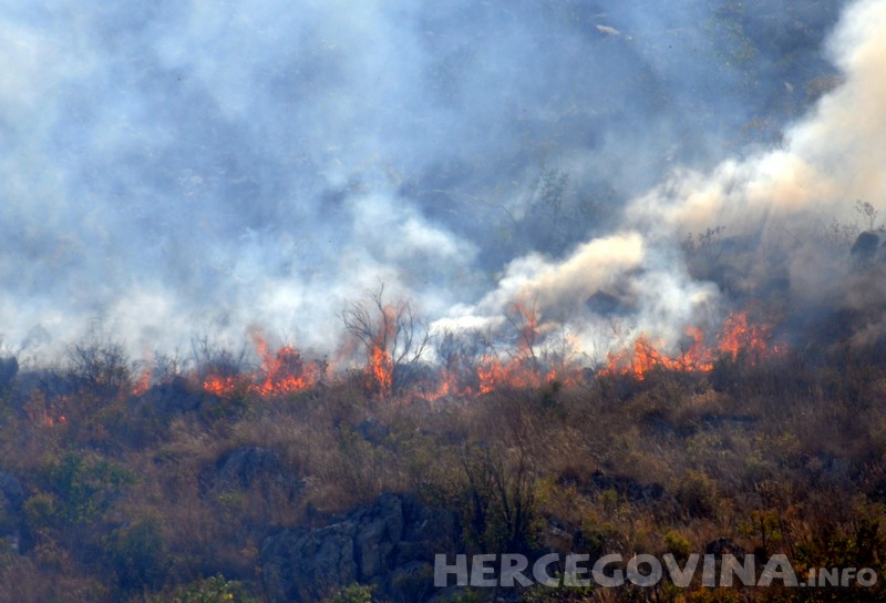 ..koja gasi požar. Nakon što je kiša prije par dana ugasila vatru danas se ponovno aktivirao požar na Humu. Vatrogasci gase dio požara koji nije na minski označenom terenu.