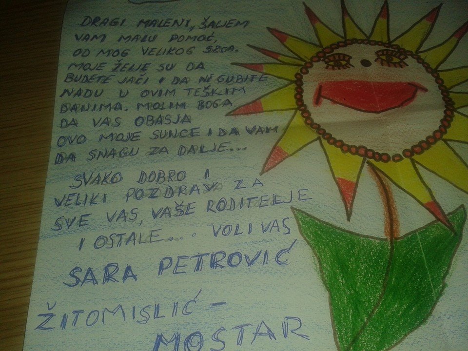 Ovaj puta to je pismo djevojčice iz okolice Mostara koja je napisla uz humanitarnu pomoć. U pismu stoji: