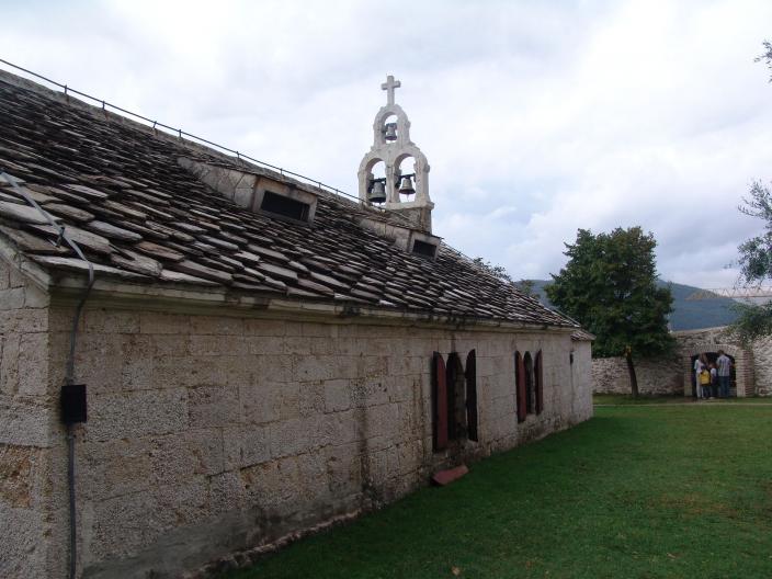 Crkvu je opasao visoki zid, premda su njezina vrata široko otvorena, i vrt oko nje jednostavan je i tipično južnjački: jedan orah, nekoliko čempresa i još ponešto što rado raste po krajevima gdje je sunca puno više nego vode. I samonikle puzavice koje se već gotovo dva stoljeća uspinju uz zidine. I grobovi davnih prota i protojereja, drugih uglednika kojima je ova crkva bila važna i kojoj su joj služili na ovom svijetu, pa su i oni njoj važni. Ako dobro računam i ako sam negdje jednom dobro čuo, ova crkva je prva kršćanska bogomolja u Mostaru obnovljena nakon početnih turskih rušenja.