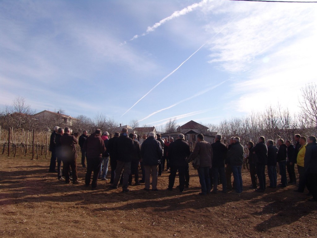 Protokol ove svetkovine uvijek je isti, najprije se ide do ovogodišnjeg domaćina i njegova vinograda, a znaju ih biti i po dvojica, te se tu iskupe pozvani, a prošlogodišnji domaćin(i) ponesu kvrgavi štap od lozova drva s odrine, dugog i račvastog, račava zakrivljenih kao jarčevi rogovi, te onda to predaju novom domaćinu, i štap je prijenosan i čuva se kao što pobjednici Lige prvaka čuvaju onaj svoj pehar. E, tu se događa zanimljivih stvari, a središnja ličnost nakratko postaje Damir Lovrić, ovdašnji inžinjer i povremeni harmonikaš i pjevač - samo za svoju i duše najbližih - a evo, već šestu godinu i "propovjednik" po izboru župljana, jer župljani - vinari ne bi to dizali na neku baš službenu razinu, jer znadu se oni i bez svećenika pomoliti i Damirova upućenost u molitvu garniranu njihovom lokalnom zajebancijom proisteklom iz stvarnosti njima je sasvim dovoljna, on je rječit i smiješan, opušten i dominira stasom i glasom nad vinogradom i ljudima okupljenim u njemu i djecom i psima okupljenim oko njega, te ponekom ženom koja je cijelu noć pripremala drangulije, a sada ne smije ni priviriti muškima, pa sve promatra iza kućne ćoše, kao da je kriva što je živa!