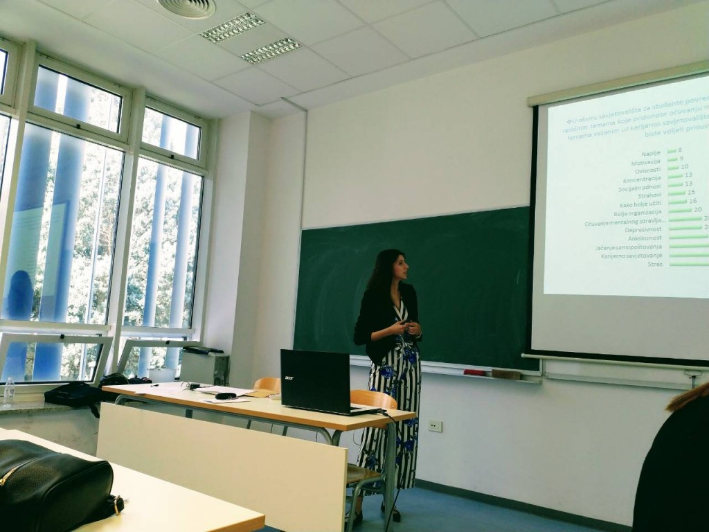 Prvog dana Dana studentskog savjetovališta studenti su upoznati s radom Savjetovališta, s temama iz područja psihologije ličnosti i predavanje o anksioznosti s kojom se susreće velik broj studenata.