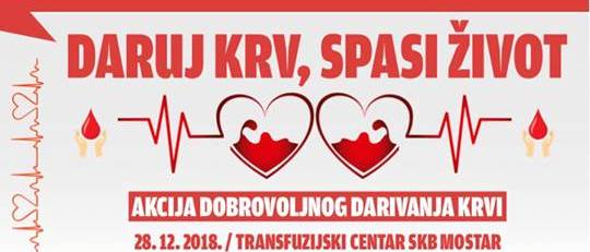 Ovim putem, pozivamo sve vas, posebno darivatelje krvi, ali i one koji to žele postati da se priključe akciji dobrovoljnog darivanja krvi, koju organizira Udruga Bonum Vitae u suradnji s Transfuzijskim centrom Sveučilišne kliničke bolnice Mostar.