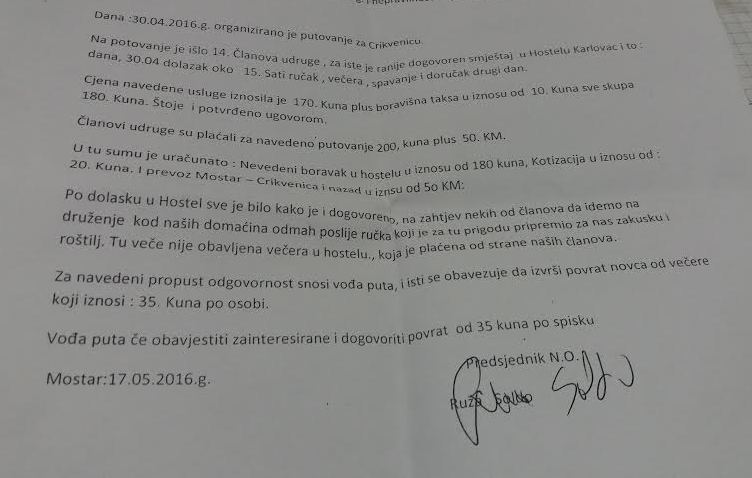 Iz Udruge obavještavaju sve sudionike natjecanja da povrat novca mogu ostvariti svakim radnim danom od 09. do 12. sati kod gospodina Stojana Livaje koji je bio vođa puta u Crikvenicu.