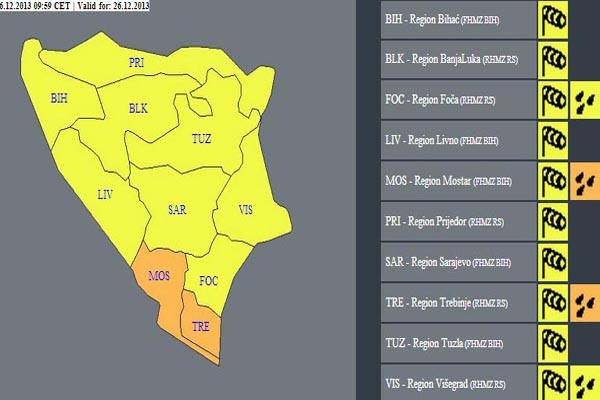 Za mostarsku regiju izdano narančasto upozorenje