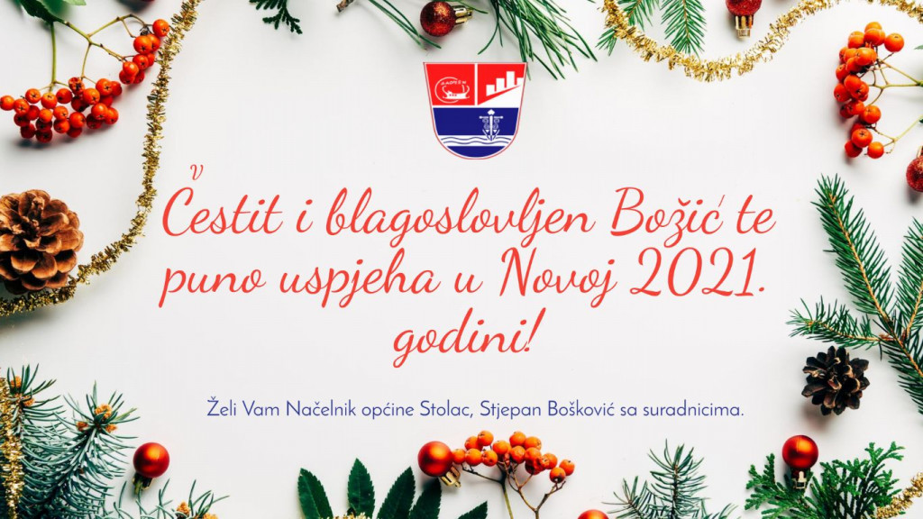 Čestit i blagoslovljen Božić te puno uspjeha u Novoj 2021. godini želi Vam Načelnik općine Stolac, Stjepan Bošković sa suradnicima.