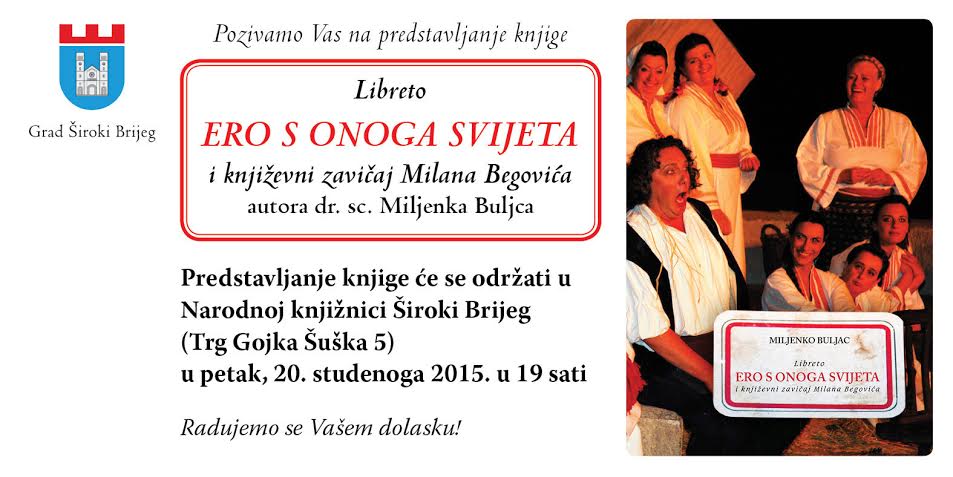 Predstavljanje knjige 'Libreto ERO S ONOGA SVIJETA i književni zavičaj Milana Begovića' autora dr. sc. Miljenka Buljca.