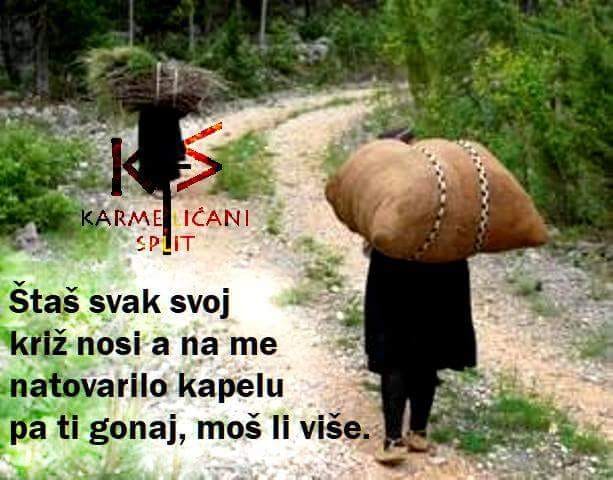 Taka mi zvizda. Štaš svak svoj križ nosi a na me natovarilo kapelu pa ti Anđe gonaj, moš li više.