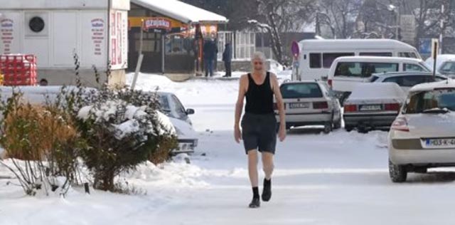 Vidjevši ga jutros na ulici mnogi su vrtjeli glavom misleći da se radi o bolesnom čovjeku. Međutim kada je stao pred kameru Flash.ba sve je razuvjerio. To je kako kaže njegov stil života. Bez obzira na minuse dnevno pređe između 10 i 15 kilometara obučen samo u kratke hlače i potkošulju iako ima 76 godina, prenosi vitez.info.