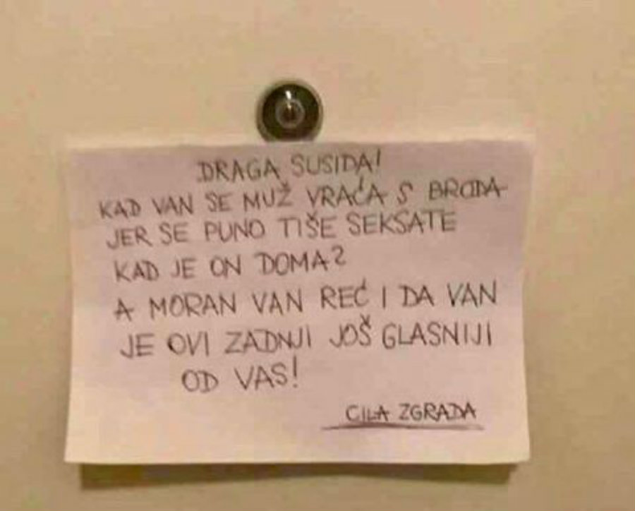 Cijela zgrada skužila da im susjeda vara muža, pa joj ostavili urnebesnu poruku...