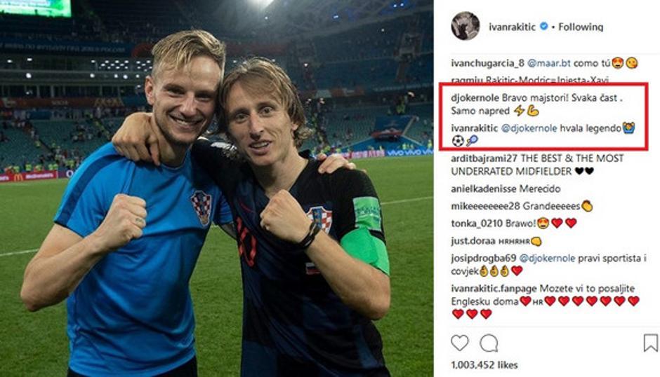 No, tenisač se na to ne osvrće. Đoković je tako komentirao fotografiju koju je Ivan Rakitić objavio na Instagramu.