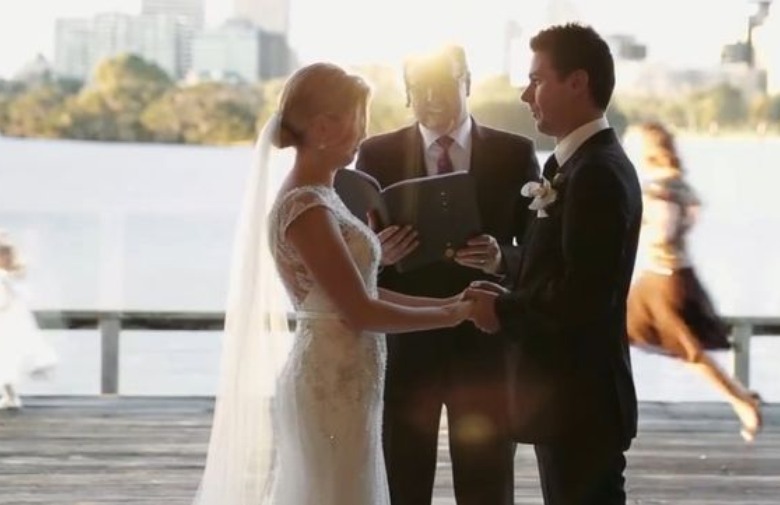 Tom i Katie Quirk bili su usred izmjenjivanja bračnih zavjeta u predivnom okružju Albert Park Lakea u australskom Melbourneu kad im je trogodišnja nećakinja Chloe upala u kadar. Sekundu kasnije u kadar ulijeće i njezina mama pokušavajući je uhvatiti prije nego što joj dijete padne u vodu ili uradi neku drugu nepodopštinu.