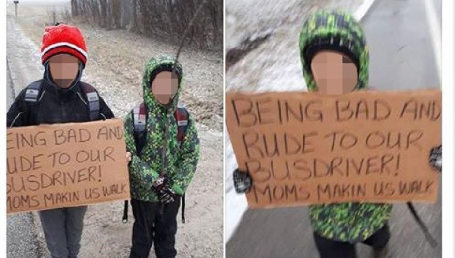 Ona je na Facebooku objavila fotografiju svojih sinova koji drže karton s natpisom 'Bili smo zločesti i nepristojni prema našem vozaču autobusa. Mama nas je natjerala da hodamo' te je objasnila cijelu situaciju.