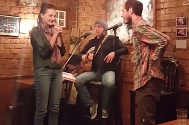 Nakon što je bend završio pjesmu, pozvali su Matiju koji je za Miju imao pitanje. Gosti kafića počeli su navijati, a Matija je, u želji da klekne ispred nje, završio na podu.