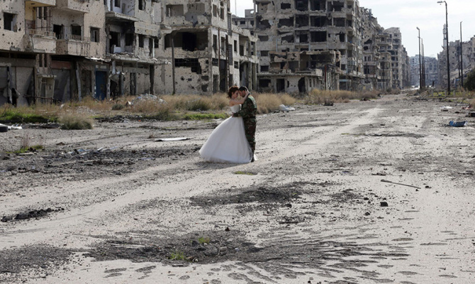 Jafar Meray te je posljedice ratnih razaranja iskoristio kako bi poslao snažnu poruku. Uništeni grad poslužio mu je kao idealan kontrast, u odnosu na mladu ženu u bijeloj haljini i muškarca u vojnoj odori, koje je, u vrtlogu rata, spojila ljubav. "Život pobjeđuje smrt", poručili su preko društvenih mreža ovo troje Sirijaca.
