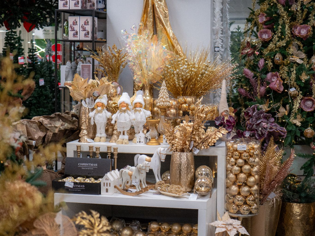 Kuglice, vijenci, girlande i mašne unose vedrinu i boje, dok ukrasni pikovi, grane, figure i svijećnjaci daju završni osobni potpis. Tu su i ogradice, kućice i mahovina za božićne makete, šalice i keramičke posude za trenutke uz tople napitke, te ukrasne božićne kutije, papir za zamatanje i limene kutije za kolačiće i kekse.