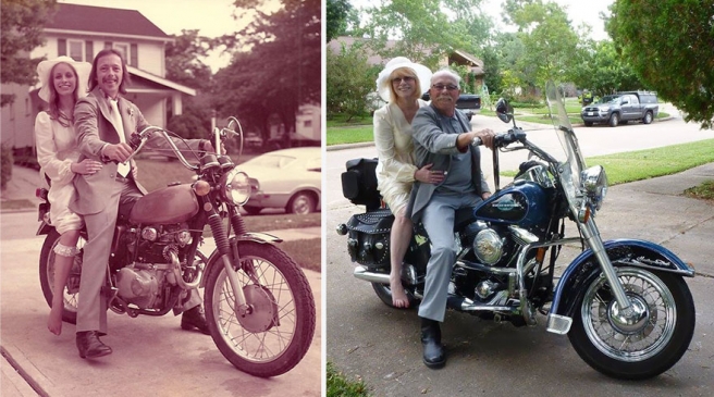 Za 40. godišnjicu braka odjenuli odjeću sa svadbe, sjeli na motor i rekreirali vjenčane fotografije