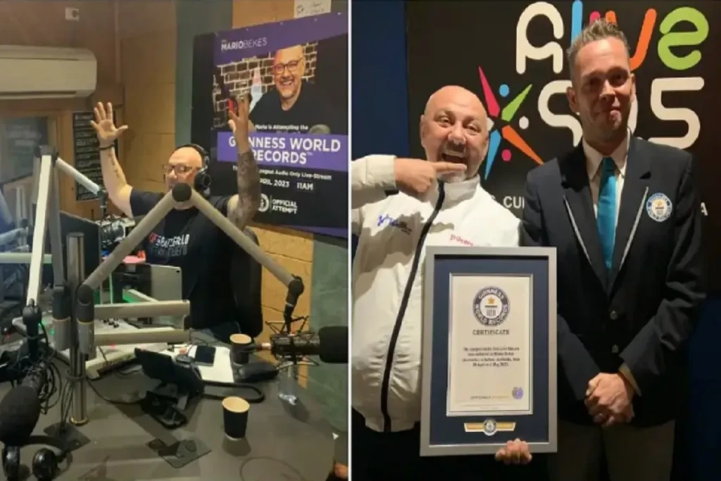 Radio voditelj, Mario Bekes, iz Australije oborio je Guinnessov svjetski rekord vodeći emisiju koja je trajala 55 sati i 26 minuta.
