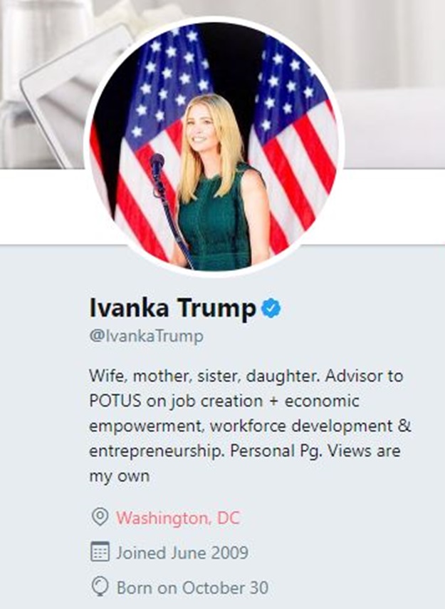 Ivanka je promijenila svoj opis posla na Twitteru, pa sada on izgleda ovako: