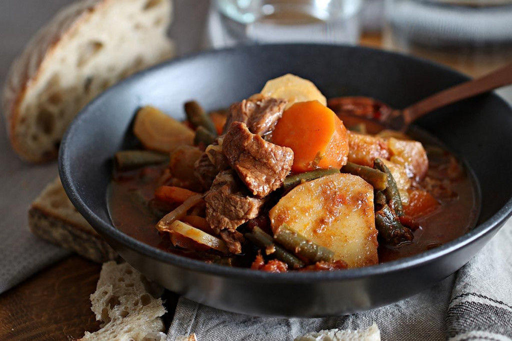 Poklopite i stavite peći u zagrijanu pećnicu na 200 °C. Pecite između 2,5 i 3 sata. Jelo je gotovo kada meso skroz omekša, a poslužite ga u dubokim tanjurima ili zdjelicama.