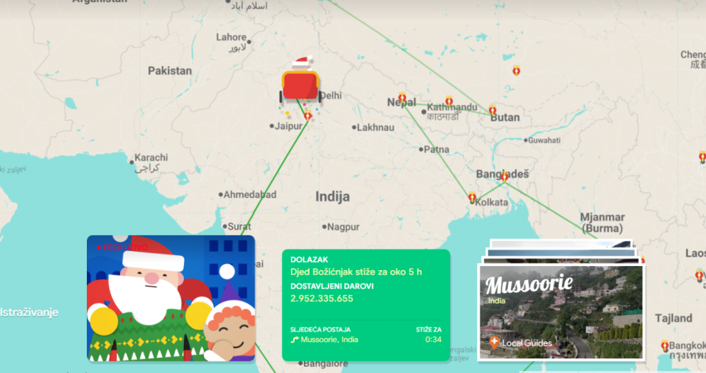 Googleova verzija donosi interaktivnu kartu, dnevne božićne igre, kratke edukativne sadržaje i praćenje Djeda Božićnjaka u stvarnom vremenu na Badnjak.