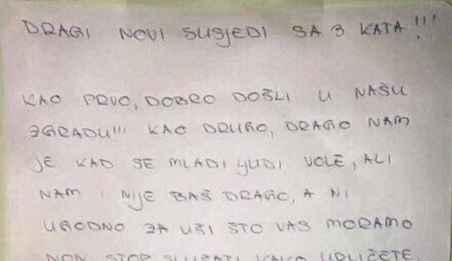 Na početku poruke novim susjedima je iskazana dobrodošlica u zgradu, ali potom su počele lekcije iz bontona: